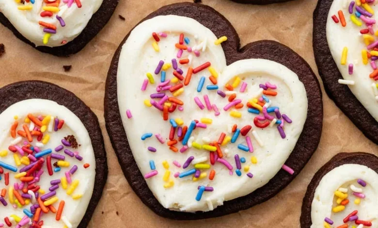 Cookie Decorating Buttercream: As seen in the pictured heart-shaped cookies, buttercream offers a classic, creamy texture. It is piped using tips like a Wilton 1A and can be easily spread and embellished with sprinkles.